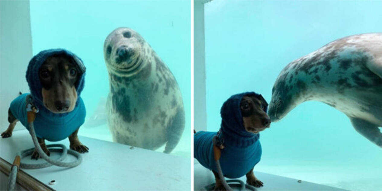 未知との遭遇から仲良しに アザラシの保護施設に遊びに行った犬が出会った不思議な友達 もふたん